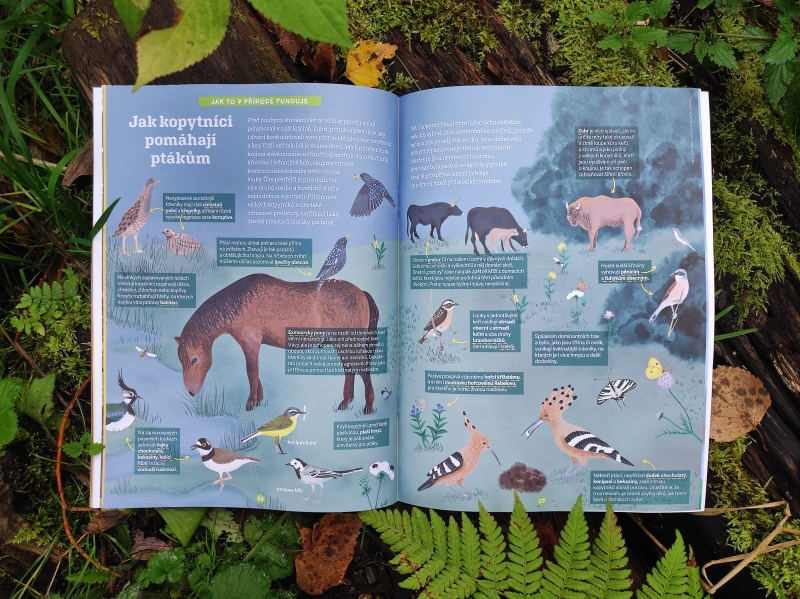 - a také na pastviny velkých kopytníků, kde můžeme pozorovat i různé druhé ptáků