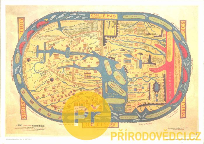 Beatus. S. Beati Liebanensis Mappam mundi : ad exemplar ecclesiae Sancti Severi, quod nunc Parisiis asservatur. [Praha] : Map Collection of Charles University, [199-]. 1 mapa : barev. ; 27 x 40 cm na listu 30 x 42 cm. Faksimile mapy vydané roku 1889
