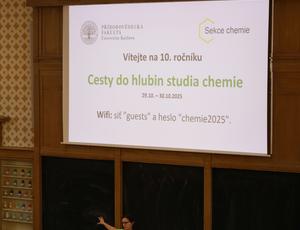 Na Chemické sekci PřF se uskutečnil ve dnech 29. – 30.10.2025 jubilejní 10. ročník semináře Cesta do hlubin studia chemie. Dvoudenní seminář je určen pro učitele chemie středních škol a jejich žáky a v letošním roce se ho zúčastnilo 65 učitelů a 82 žáků.