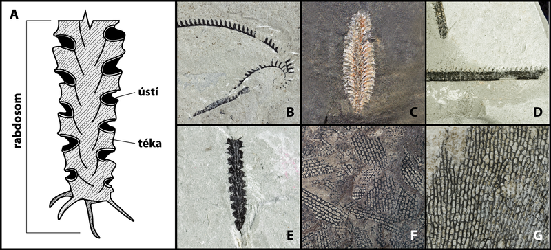 Graptoliti byli koloniální mořští živočichové, kteří si vytvářeli vnější kostru – rabdosom. Ten byl tvořen drobnými komůrkami (tékami), v nichž žili jednotlivci navzájem propojení tkáňovým provazcem. Přesné chemické složení rabdosomu není známé, ale podstatnou složkou byla organická látka zvaná periderm. Celé kolonie mohly mít nejrůznější tvary: známe graptolity keříčkovité, větevnaté, prutovité nebo spirálovité.